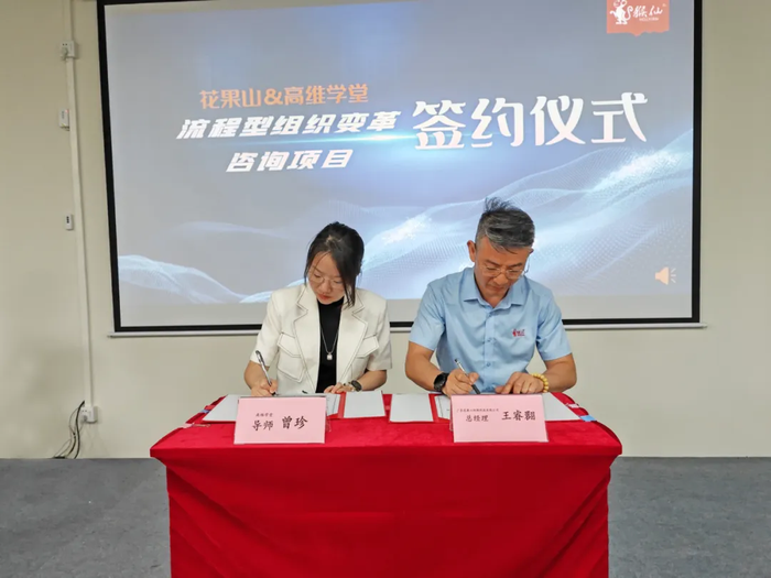 高维学堂的顾问老师曾珍表示,此次变革将深入到花果山的各部门各体系,将先进的方法论和成功的实践经验与花果山的现状相结合,梳理和重建我司的业务流程体系,明确职位与团队如何在流程中链接客户,帮助客户创造价值,为花果山的长远发展注入源源不断的动力。 签约仪式