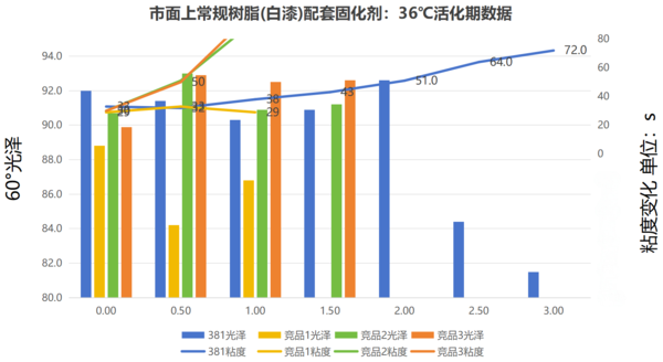 搭配市面上常规树脂 与市面上同类固化剂的活化期对比: